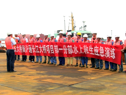 8月25日下午,一场紧凑的水上救援应急演练在沪通长江大桥北岸工地举行。为进一步提高水上突发事件的应急能力及检查应抢救援计划的实效性,二公司沪通桥项目部对这次水上救援应急演练进行了精心策划和周密安排,组织船舶3艘,其中事故演练船只1艘、海事机动船2艘,项目部宁静环保部、综合治理部、调理室、现场宁静员、架子队作业人员以及海事救援人员和突发事件救援小组成员等30余人加入了演练,同时邀请了局项目部、监理以及天生港海事处的领导莅临现场观摩。
