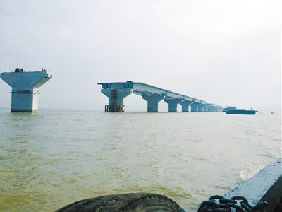 ×òÈÕÏÂÎç¼ÇÕßÔÚÏÖ³¡¿´µ½£¬·Çͨº½¿×ÇÅ158ºÅ¶ÕÏ£¬¹²ÓÐ6¸öÖ±¾¶2Ã×µÄ×ê¿××®£¬È綨º£ÉñÕë°ãÖ±²åµ½º£´²ÒÔÏÂ90¶àÃס£¹¤ÈËÃÇÕýÔÚ¶Ô¶ÕÏÂ×îºóÒ»¸ö×ê¿××®½øÐлìÄýÍÁ½½Öþ¡£CB05±ê×ê¿×׮ʩ¹¤ÓÚ2012Äê11ÔÂ16ÈÕ¿ª×꣬½¨ÉèÕßÃǿ˷þÅÓ´óµØÖÊ£¬±°ÁÓº£¿ö£¬Õ½¿áÊ¶·Ì¨·ç£¬·ÜÕ½572ÌìºóÐû²¼Ìáǰ¸æ½Ý¡£CB05±êÓɴ˳ÉΪÈý¸öÇÅÁºÍÁ½¨±êÖÐ×ÜÌåÊ©¹¤½ø¶È×î¿ìµÄ±ê¶Î¡£
