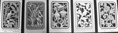 黄旭微设计的长江一桥铁栏图案手绘稿,左起第一幅《紫藤》被接纳记者彭年