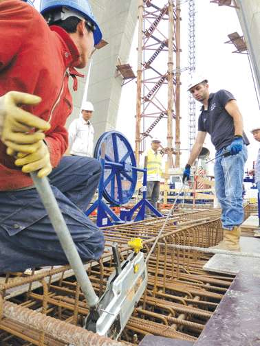 据悉,该桥斜拉索将分批装置和张拉,其装置定位尺寸要求高,且预应力张拉施工需要经过五次调解才华完成,第五次张拉调解要求在大桥建成三年后进行。