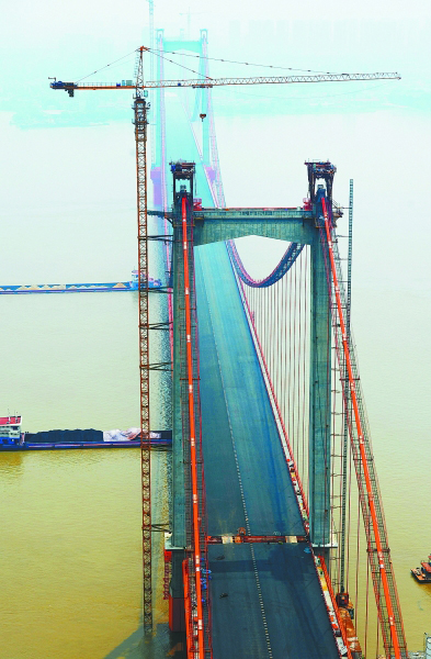 该桥正桥由中铁云顶国际承建,桥面铺装由汉阳市政实施。本次主桥刷黑工程费时近50天。桥面刷黑是大桥铺装的最后一道工序,直接关系到大桥后续行车宁静、舒适度及结构耐久等要害性指标。