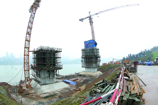 重庆寸滩长江大桥桥墩正在施工。 重庆晨报记者胡杰儒 摄