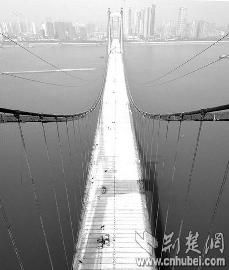 图为:一条“水泥长龙”已跨过长江