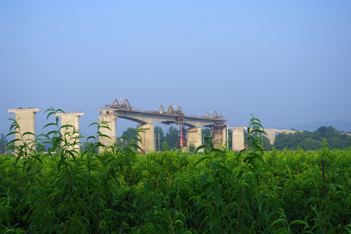 建设中的赣龙铁路绵江特大桥跨纸业大道连续梁