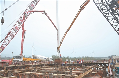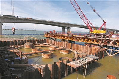 ×®»ùÊ©¹¤½øÕ¹Ë³Àû£¬8¸ö³¤33.6Ãס¢¿í20.4Ã׵ij¤·½ÐÎË®ÖгÐ̨ΧÑßÊ©¹¤ÊÇÏîÄ¿²¿¹Ø×¢µÄÄѵ㡣ÔÚÆ½¾ù12Ã×Ë®ÉîÇé¿öÏ£¬Î§ÑßÊ©¹¤´Ó2016Äê9Ô¿ªÊ¼£¬Í¶ÈëË®Öиְå׮ΧÑß8Ìס¢ÂÄ´øµõ13̨¡¢Æû³µµõ10̨¡£