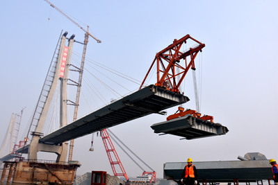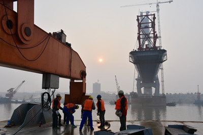 ÏÂÎç15ʱ13·Ö£¬5ºÅÖ÷Ëþ¶Õ¸ÖÏäÁº¼ÜÉè½ôÂàÃܹĽøÐУ¬Ëæ×ŵ¥½Ú¶ÎÖØ´ï178¶ÖµÄµÚ29Ƭ½Ú¶Î¸ÖÏäÁºÄþ¾²¡¢Æ½ÎÈ¡¢×¼È·µÄ×°Öõ½Î»£¬ÖÐÌúÔÆ¶¥¹ú¼ÊÎ幫˾³Ð½¨µÄ¶´Í¥ºþÌú·´óÇÅ4ºÅ¡¢5ºÅÖ÷Ëþ¶ÕÒѼÜÉè54Ƭ½Ú¶Î¸ÖÏäÁº£¬×ܳ¤¶È½Ó½ü750Ãס£½ØÖ¹µ½·¢¸å£¬4ºÅÖ÷Ëþ¶ÕÄÏ¡¢±±¶Ë¸ÖÁº»¹¸÷Ê£Á½¸ö±ê×¼½Ú¶Î¡¢5ºÅÖ÷Ëþ¶Õ¸ÖÁº»¹Ê£Á½¸ö±ê×¼½Ú¶ÎºÍÒ»¸öºÏÁú¶Îδ¼ÜÉè¡£