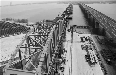 工人日报:京张高铁官厅水库特大桥首孔钢梁顶推到位