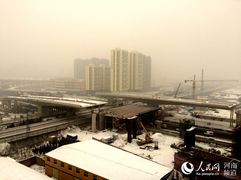2016Äê1ÔÂ22ÈÕ£¬Ö£ÖÝÆ®ÆðÁË´óÑ©¡£ÉÏÎç10µãÕû£¬ÇÅÁº×ªÌåÊ©¹¤Õýʽ¿ªÊ¼¡£Á½·ù¸÷131Ã׳¤¡¢1.23Íò¶ÖÖØµÄ¸Ö½î»ìÄýÍÁÇÅÌ壬ÔÚ88·ÖÖÓÀïͬ²½ÄæÊ±ÕëÐýתÁË87.3¶È£¬Ë³ÀûÍê³ÉÁË¡°·ÉÔ½¡±Â¤º£Ìú·µÄתÌåÐж¯¡£