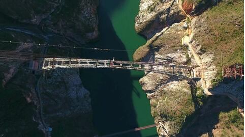Á½Ñ¼ÐʯÈçÅü£¬Ê©¹¤µ¥Î»ÖÐÌúÔÆ¶¥¹ú¼ÊµÄ¸ÃÏîÄ¿ÂôÁ¦ÈËÌï´óǧ˵£¬ÊÜÌØÊâµØÓßÇé¿öºÍÆøºòËùÏÞ£¬À½²×½ÌØ´óÇÅÊÇÊÀ½çÉϵÚÒ»´Î½ÓÄÉ¡°¶þ´ÎÊúת¡±Ê©¹¤µÄ´óÇÅ£¬Ò²ÊÇÊÀ½çÉÏÊúתÏ·ÅÖØÁ¿×î´óµÄÇÅÁº£¬2500¶ÖµÄÏ·ÅÖØÁ¿Ï൱ÓÚ50½ÚÂúÔØ»ð³µÆ¤¡£¡°²»½û¸ÐÉË£¬ÔÚ¹ÅʱµÄ¡®ÐüÑÂÆæ¶É¡¯ÉÏ·½£¬ÏÖ´ú¿Æ¼¼×îÖÕսʤÁËÌìÏÕ¡£¡±
