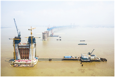 ͼ¢Ù£ºº½ÅÄÕýÔÚ½¨ÉèµÄ»¦Í¨³¤½´óÇÅ¡£