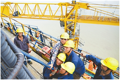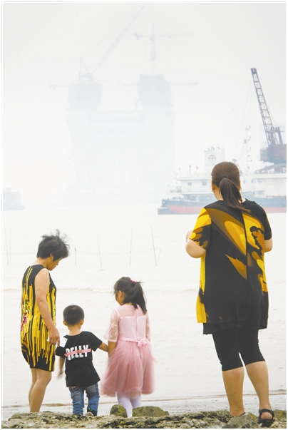 ͼ¢Û£º´óÇÅÏîÄ¿²¿ËÄÖܵĴåÃñÀ´µ½³¤½±ß£¬Ò£¿´Ô¶´¦µÄ28ºÅÇŶÕÒ»ÌìÌì¡°³¤¸ß¡±¡£
